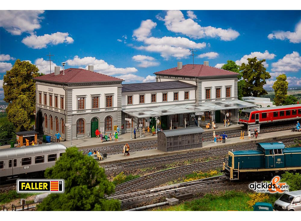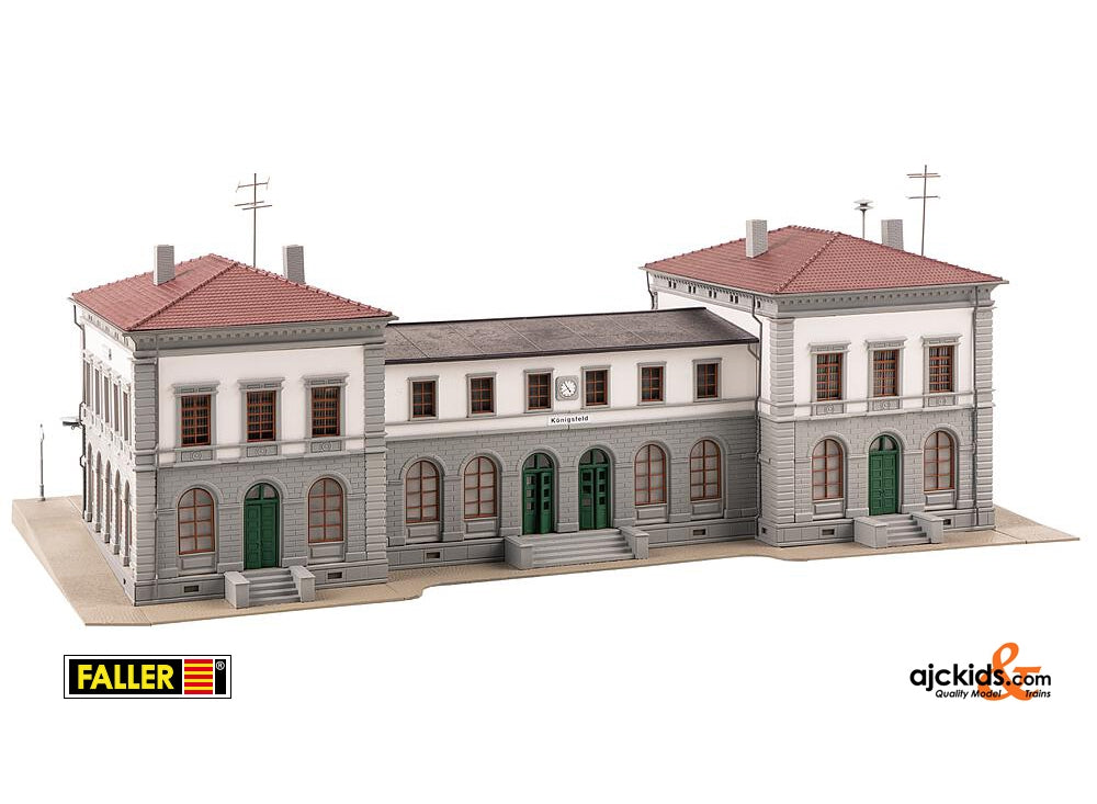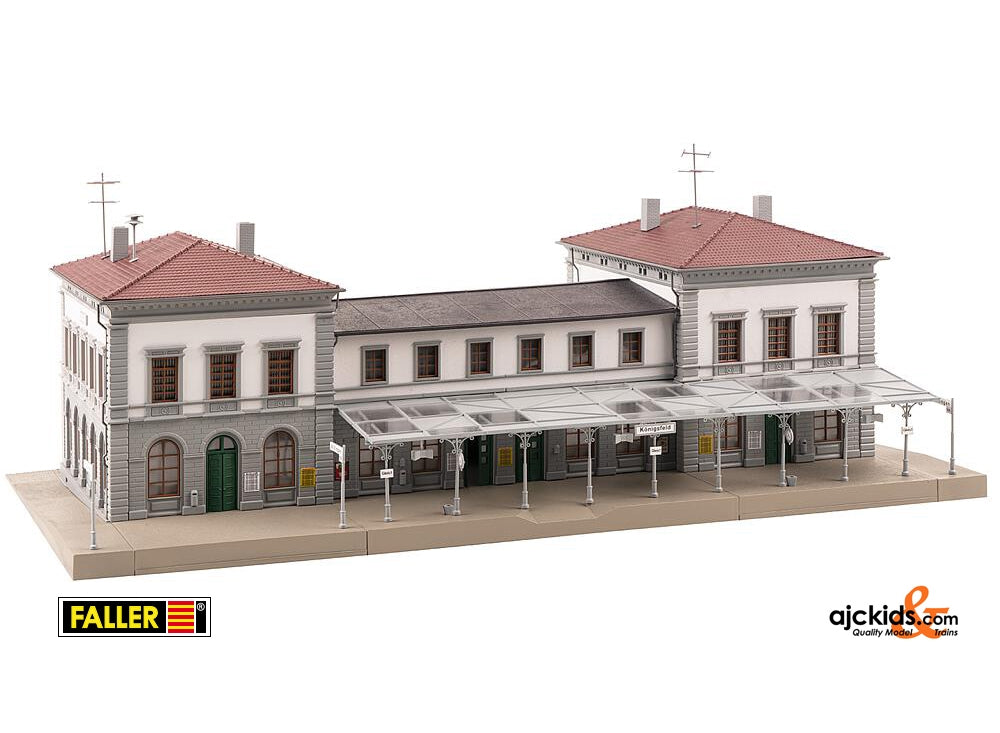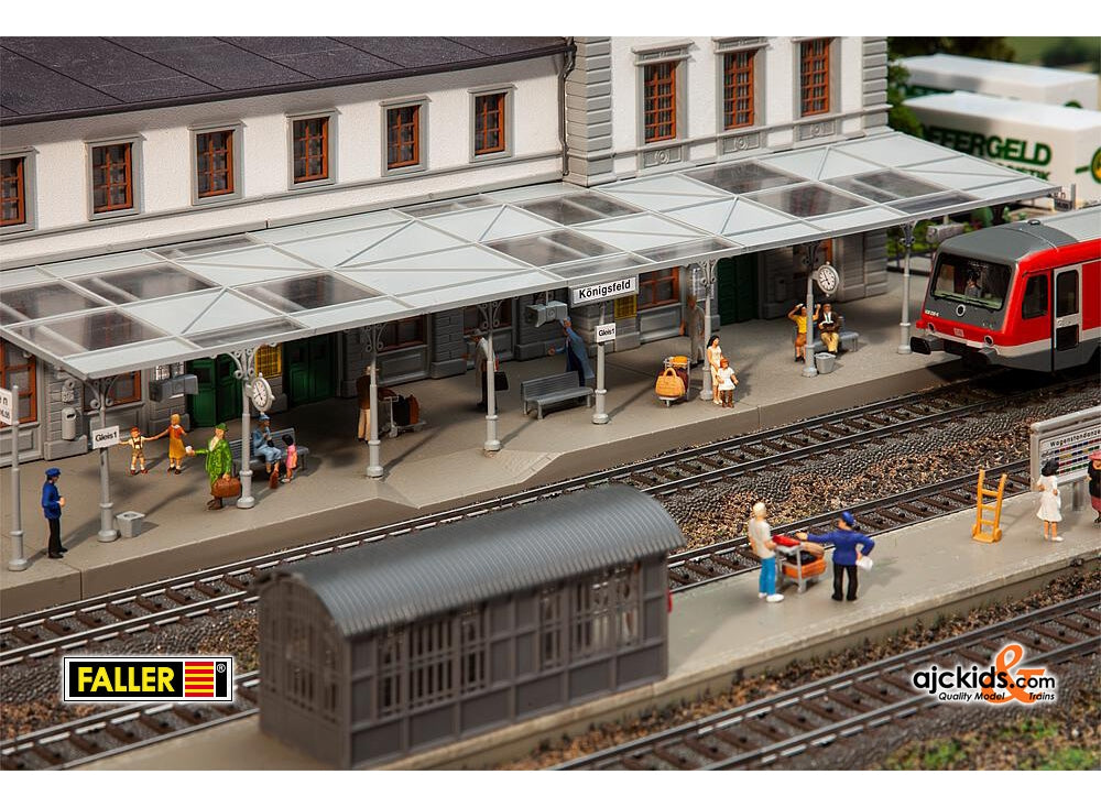 Limited edition model of a three-aisle passenger building. The central section and angle buildings of that sandstone construction of late classicism form a H-shaped ground plan. Decoration includes a glass roofing for the platform.