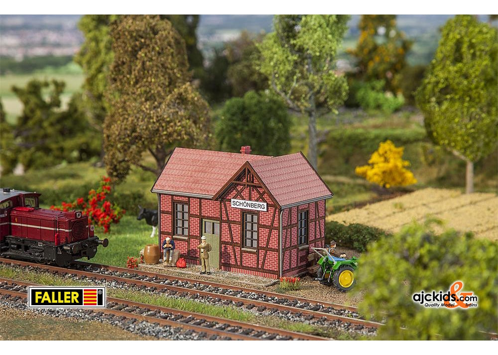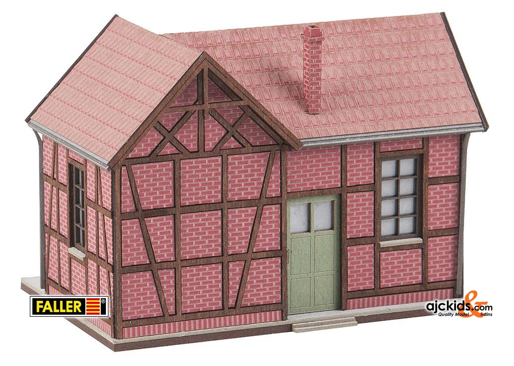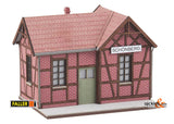 Unique edition! Laser-cut model of a small station building at a halt similar to some originals located on secondary lines in the Schwäbisch Hall district. Timber framework with exposed wall made of bricks in a beautiful red shade and a hipped roof at a corner. Can be used in rural or urban areas.