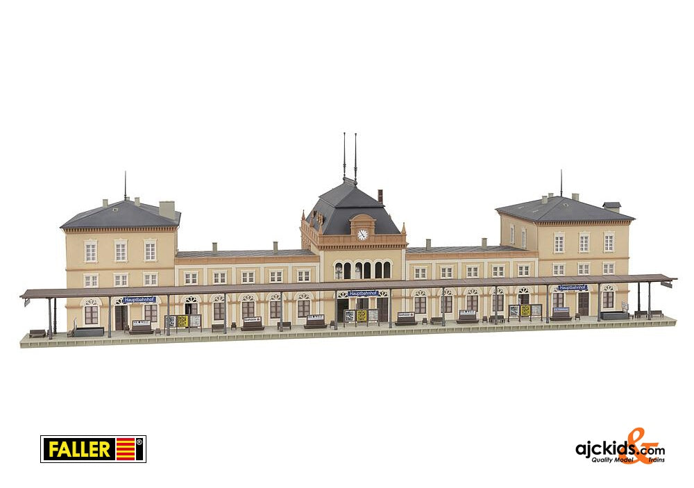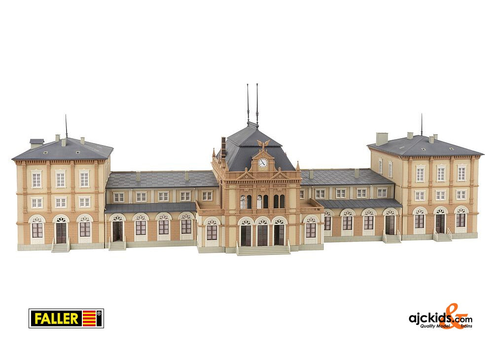 Railway station or castle? Color and construction edition of a FALLER classic! The impressive model based on the main station in Neustadt an der Weinstrasse in Rhineland-Palatinate can be built in the current re-edition either as a representative reception building with an island platform or as a late classicist castle.