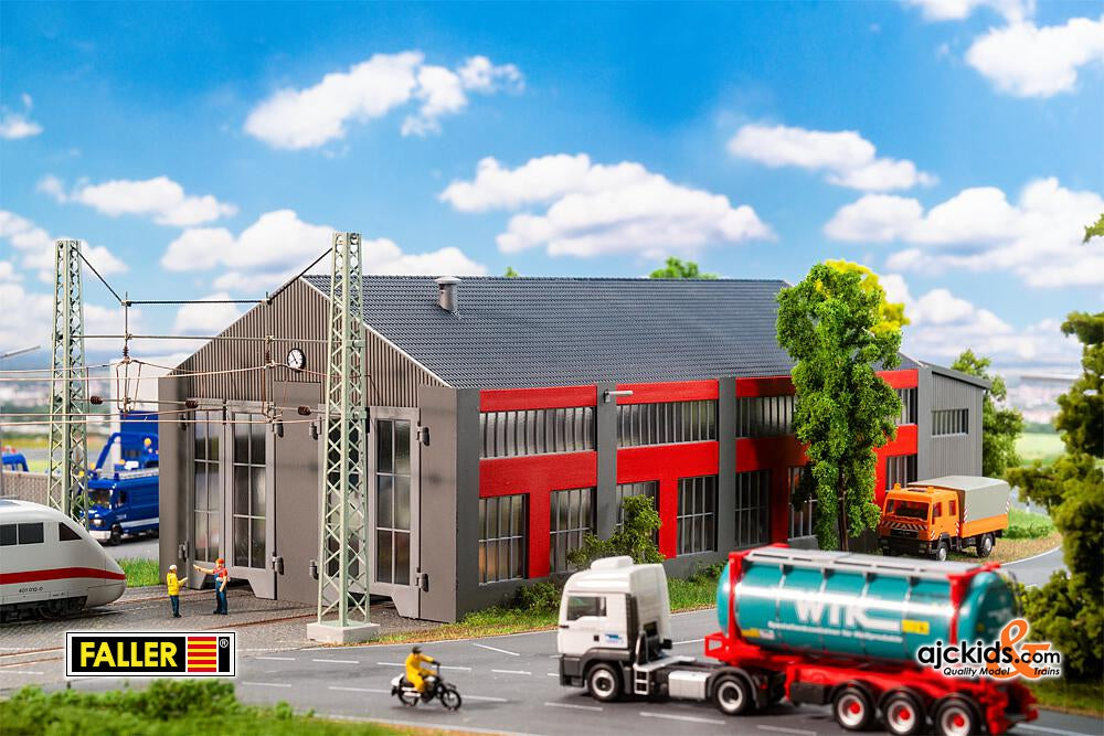 The spacious locomotive shed in a modern design with bright red accents offers enough space for two electric locomotives. Both vehicles easily find their place in the double-track building. The shed can also be used as a workshop or maintenance shed. This makes any care and maintenance of the electric locomotives child's play for the miniature railway staff. Suitable for locomotives with a gauge of up to 300 mm.