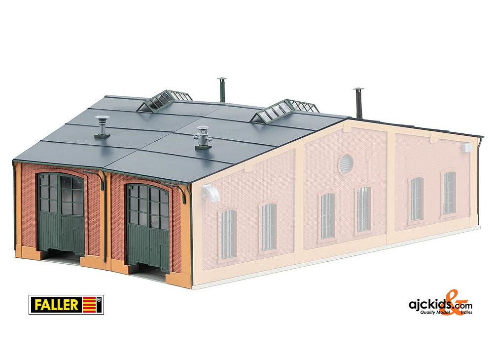 For the large engine shed. Two-stall extension element without lateral walls for "Roundhouse with 12° track angle", Art. 120281.