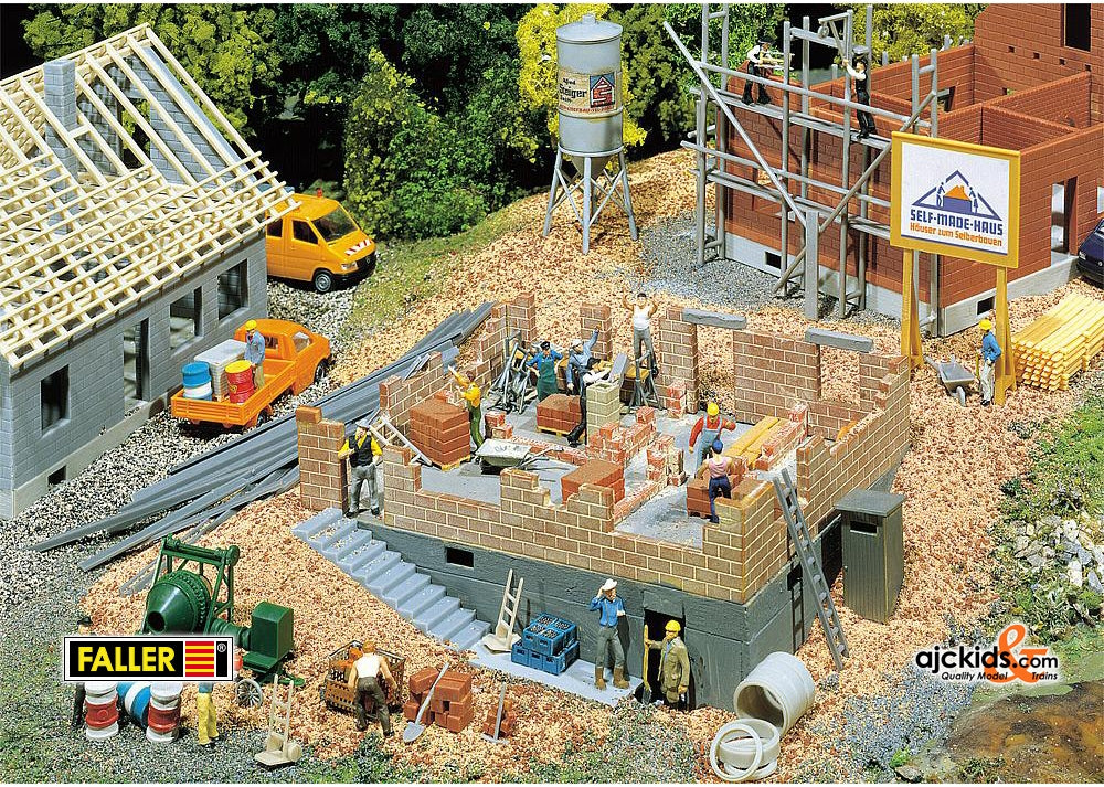 Foundation and cellar have been finished, the outer walls are being erected. Typical building site accessories are part of the set.