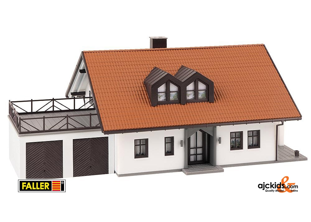 Model of a one-Story dwelling house with garages and a terrace in the annexe.
