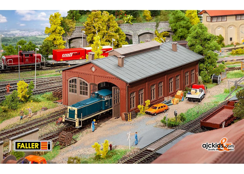 Two-Stall Brick Engine House, Kit, 12-11/16 x 6-15/16 x 4-5/8" 32.2 x 17.6 x 11.8cm Loco Depth: 11-7/16"
