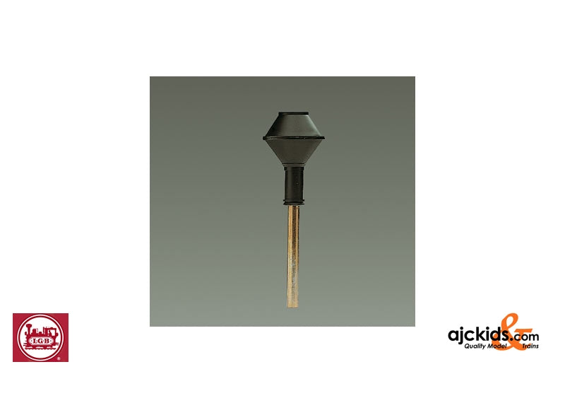 This LGB smoke stack is equipped with a smoke generator and includes hardware for installing the stack in many older starter set locos without smoke generators.