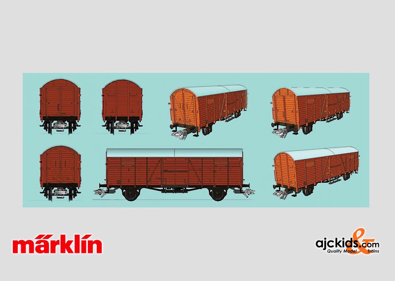 Model: The car types come in an attractive display, 10 of each type without simulated end wall doors as the type Gl(r) 22, 5 of each type with simulated high end wall doors as the type Bauart Glt(r) 23, and 5 of each type with simulated low end wall doors as the type Glt(r) 23. All of the cars have different car numbers. All of the cars have truss rods and additional steps. Each car comes individually packaged in a marked box. Length over the buffers per car 13.9 cm / 5-1/2". DC wheel set per car 2 x 700580.