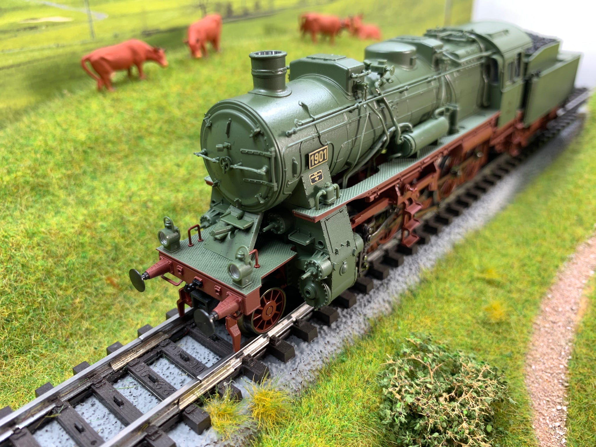 Prototype: Württemberg State Railways (W.St.E.) class G 12 steam freight locomotive. Olive green provincial railroad paint scheme. Road number 1901 built in 1919 under builder number 3865 by the Esslingen Machinery Company. The locomotive looks as it did when delivered around 1919.