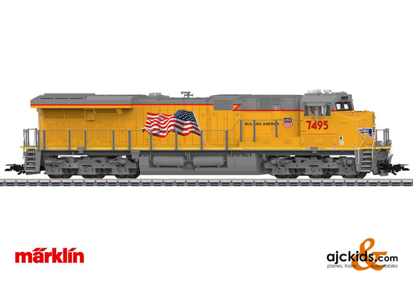Prototype: Type General Electric ES44AC heavy diesel electric freight locomotive painted and lettered for Union Pacific Railroad (UP). Yellow basic paint scheme. Road number 7495. The locomotive looks as it currently does in real life.
