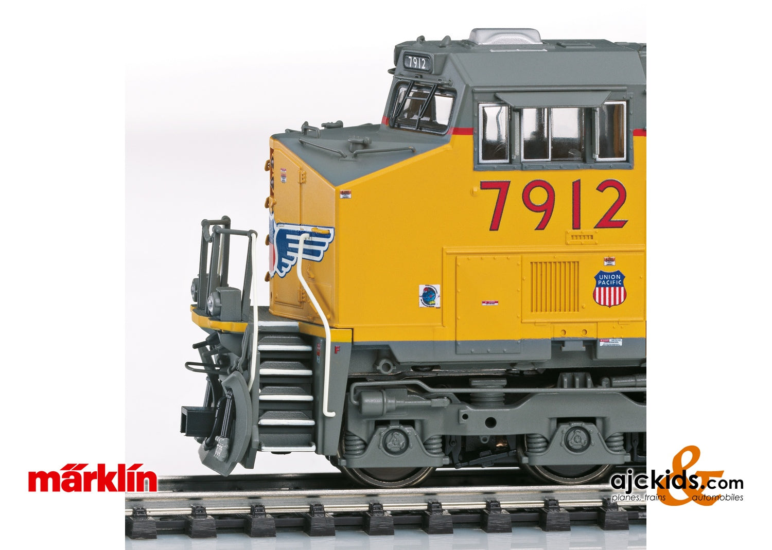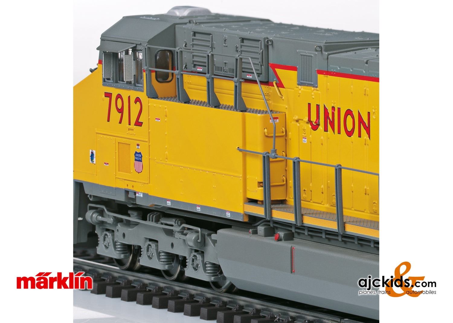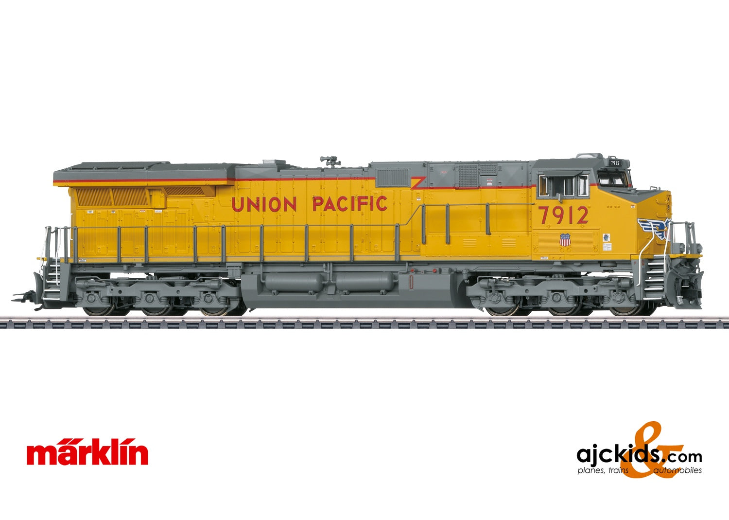Prototype: Type General Electric ES44AC heavy diesel electric freight locomotive painted and lettered for Union Pacific Railroad (UP). Yellow basic paint scheme. Road number 7912. The locomotive looks as it currently does in real life.