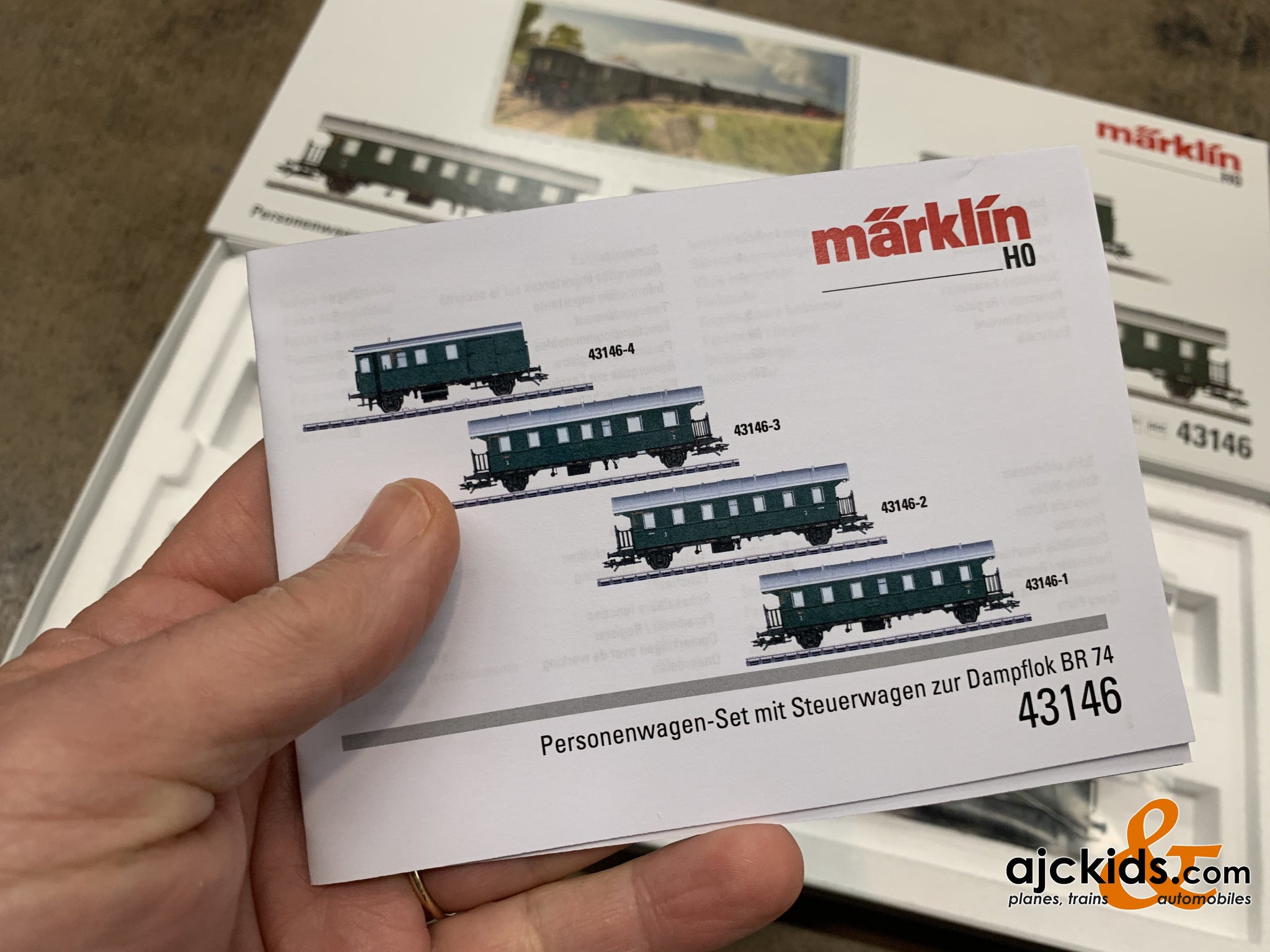 This car set can be found at Ajckids in DC in the Trix H0 assortment under item number Trix 23456. The locomotive to go with this car set can be in DC at Trix under item number Trix 22550.