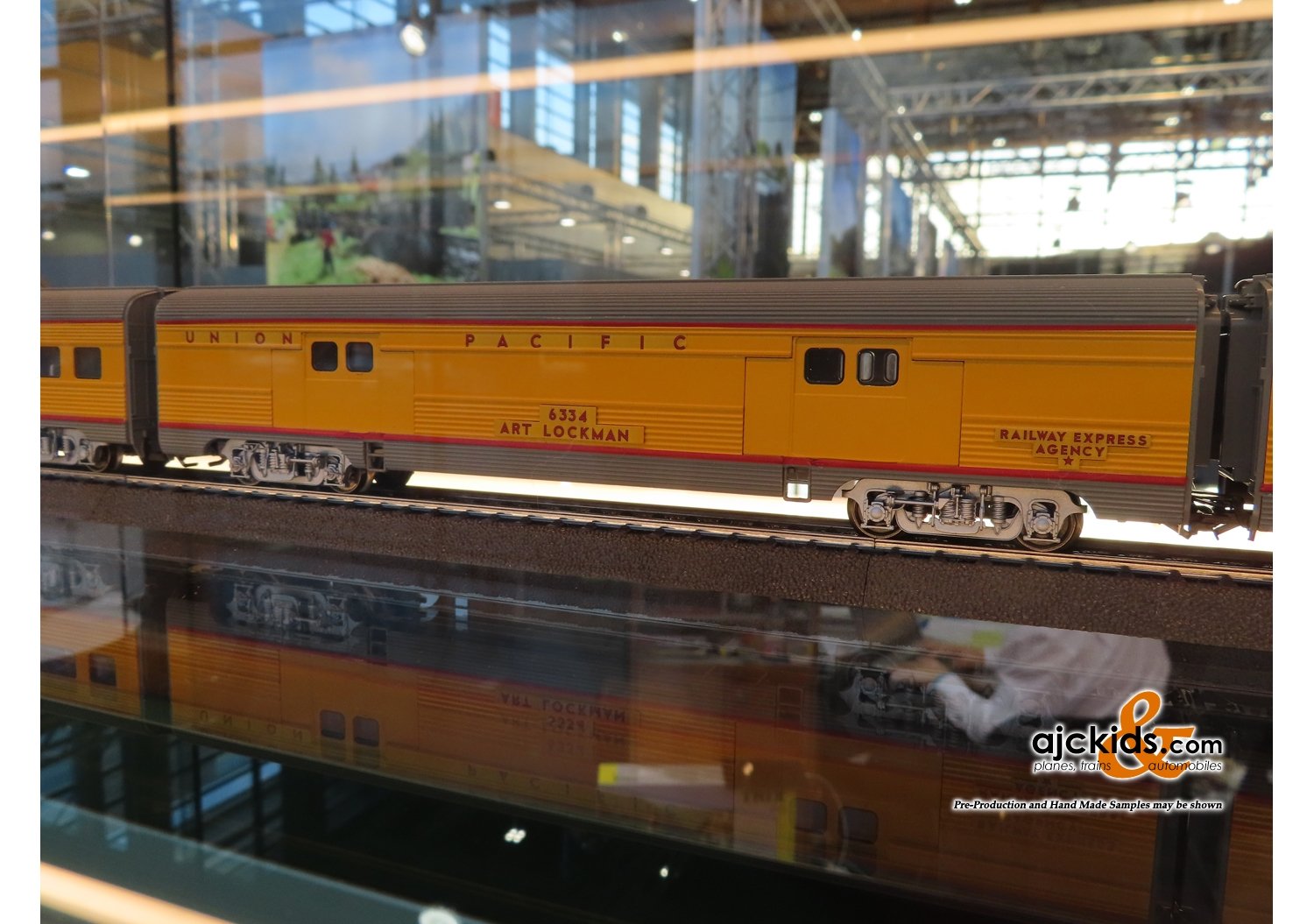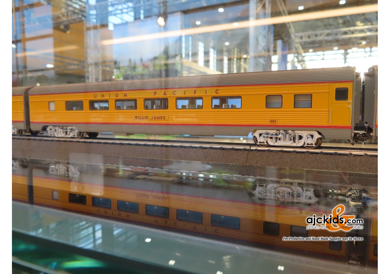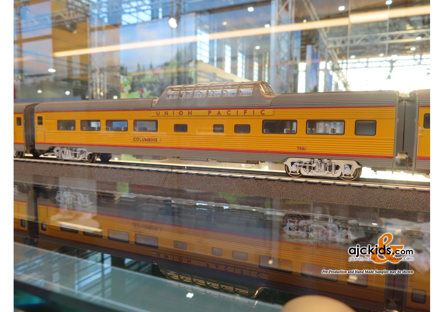 Prototype: Six Union Pacific Railroad (U.P.) express train passenger cars. Two baggage cars, two vista dome cars, and two coaches.
