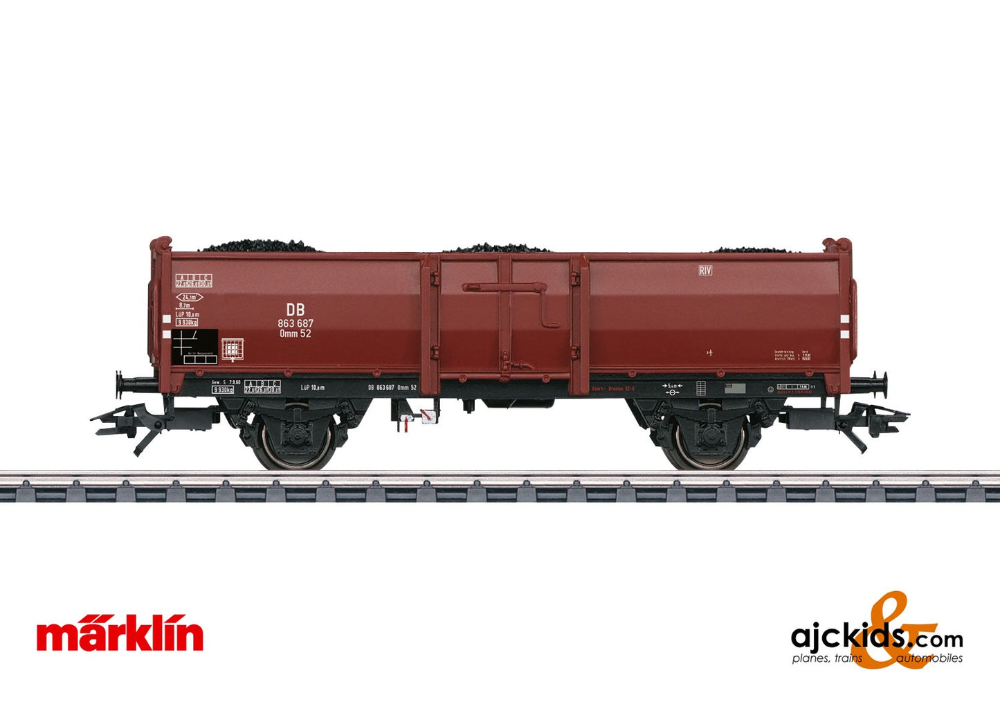 Model: The car is loaded with coal. Length over the buffers 11.5 cm / 4-1/2". DC wheel set E700580.