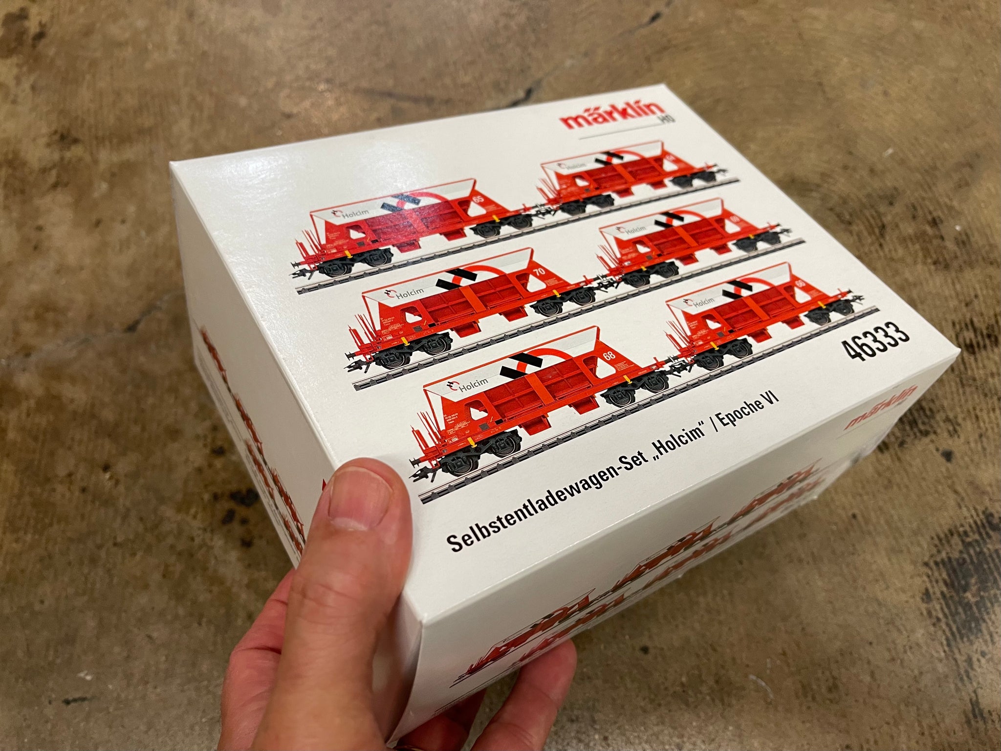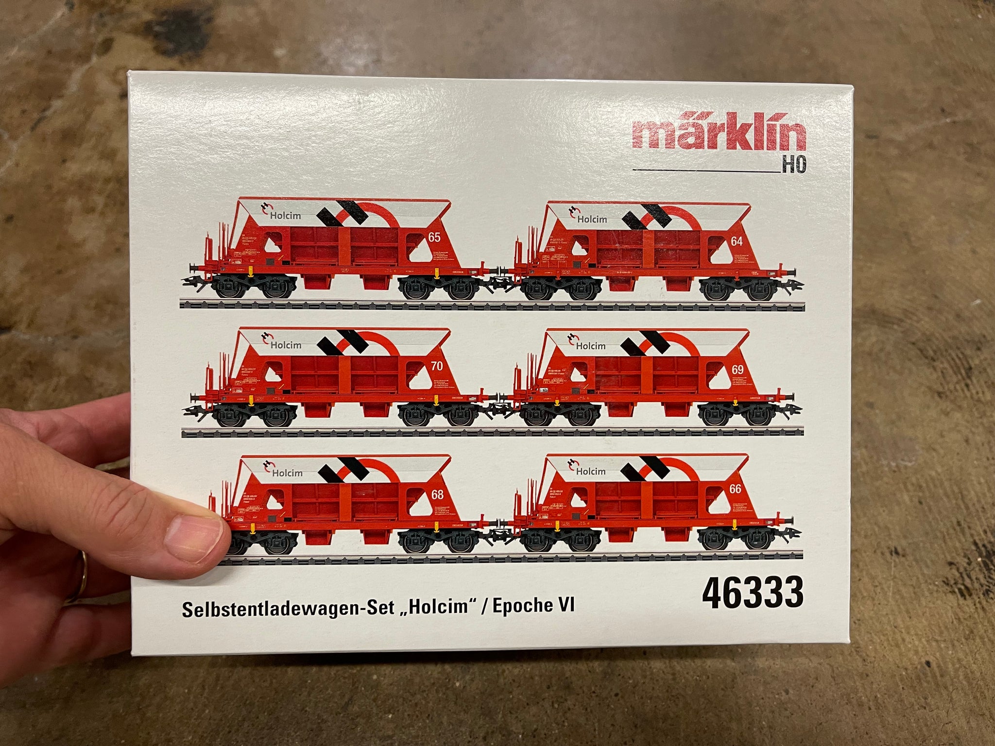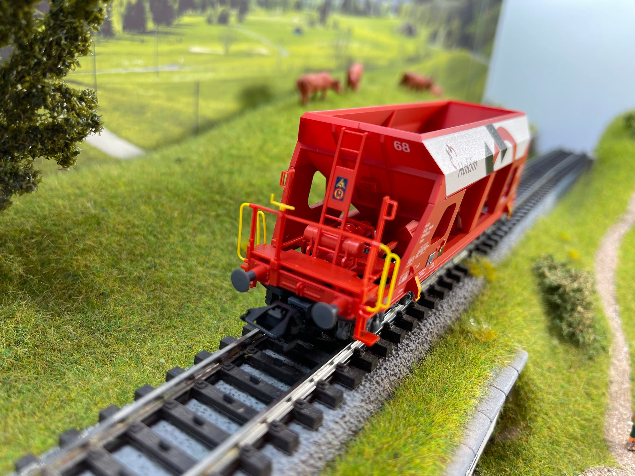 Model: The hopper cars are in the Holcim paint scheme of "Blood Orange" with different registration and car numbers. The hopper cars have separately applied details.