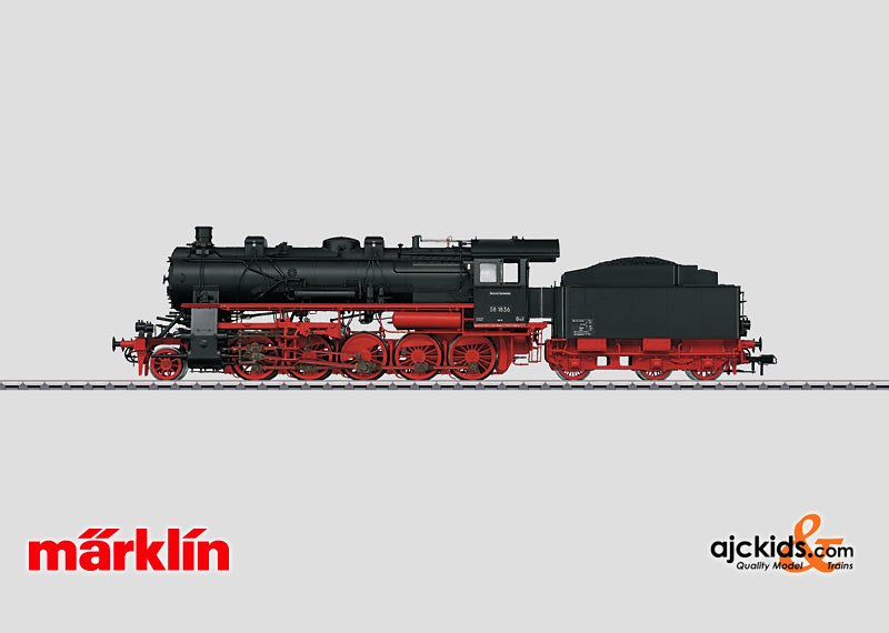 Model: The frame and the locomotive body are constructed mostly of metal. The locomotive has an mfx digital decoder, controlled high-efficiency propulsion, and a sound generator with operating sounds synchronized to the wheels as well as extensive sound functions. There are speakers in the locomotive boiler and in the tender. The locomotive can be operated with AC power, DC power, Märklin Digital, and DCC. 5 axles powered. Traction tires.