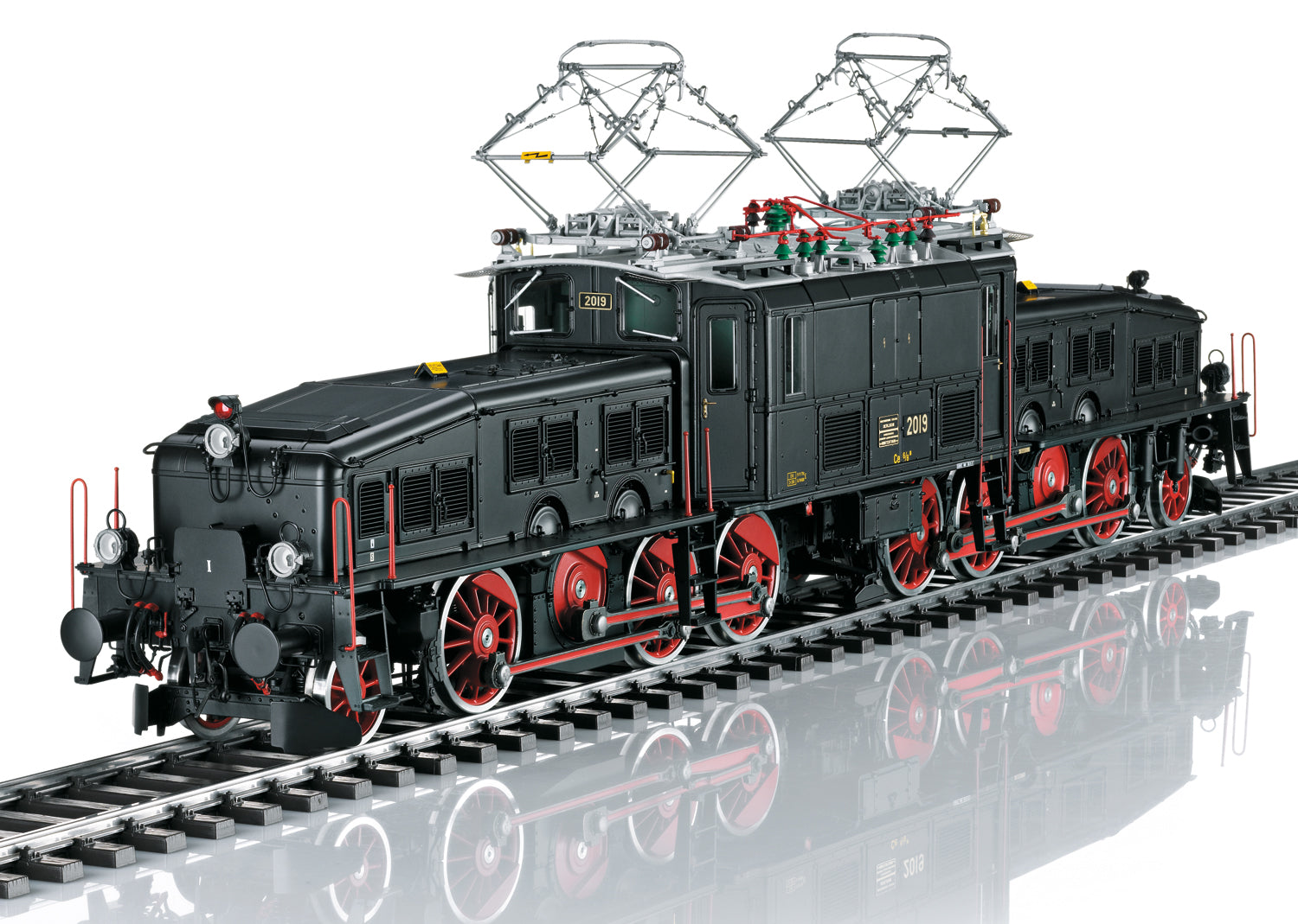 The locomotive can be operated with AC, DC, Märklin Digital, and DCC. It has centrally mounted powerful motors with propulsion to all driving axles. Double-arm pantographs can be raised and lowered with servomotors in digital operation. The white LED headlights change over with the direction of travel, will work in conventional operation, and can be controlled digitally. There is white LED lighting in the cabs that changes over with the direction of travel. The engine room lighting can be controlled.