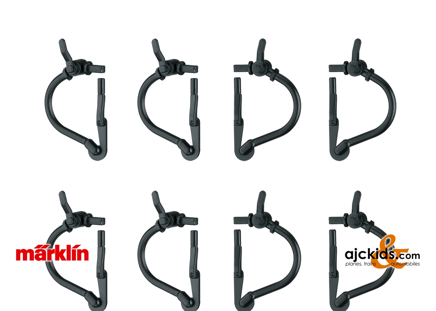 These are detailed brake lines for mounting on locomotives and cars. The set contains 4 right and 4 left brake lines. They can be used on locomotives and cars with a square mount.