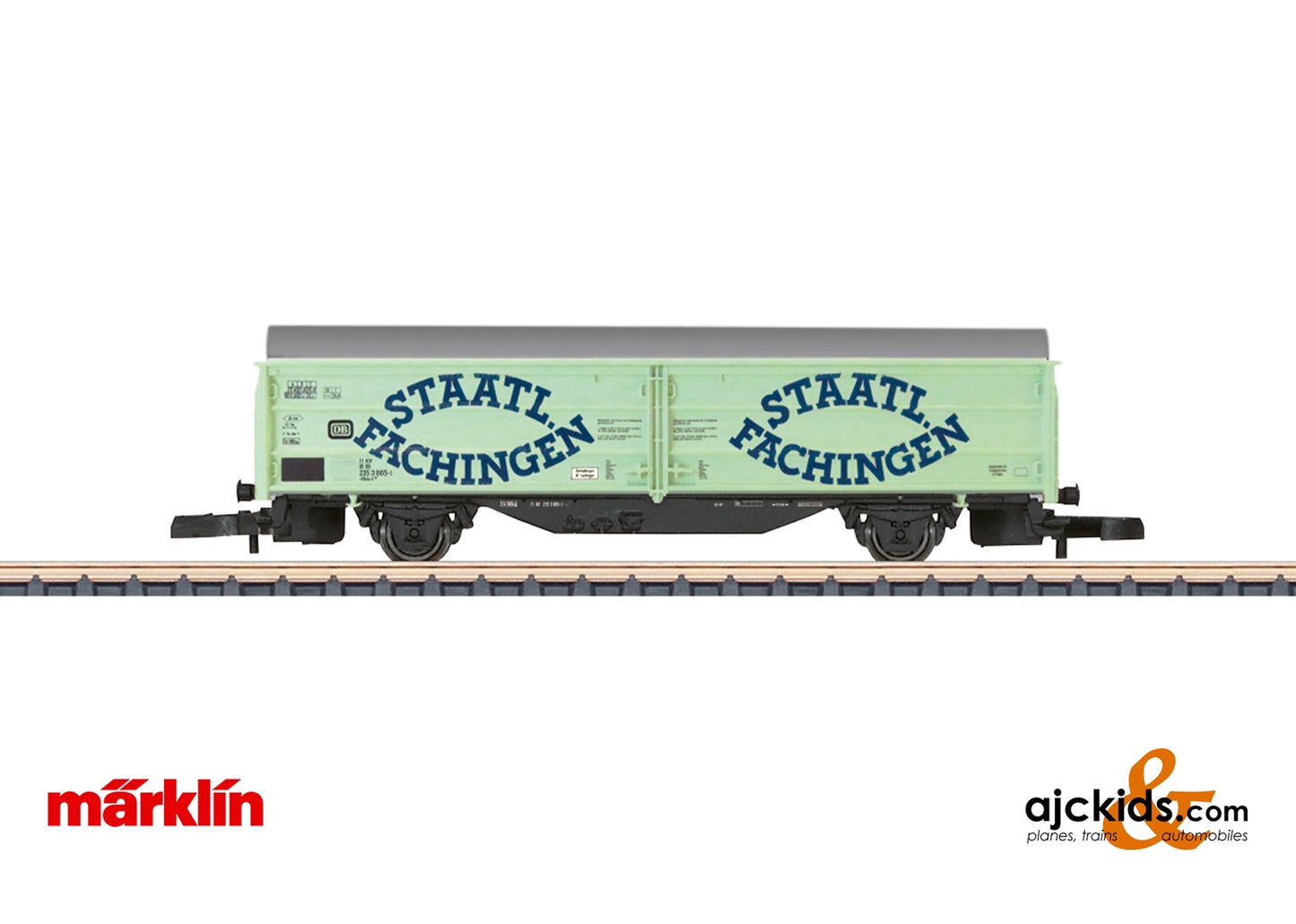 Prototype: Type Hbis-t 299 two-axle privately owned sliding wall boxcar for the firm Staatl. Fachingen used on the German Federal Railroad (DB). Car for transporting moisture-sensitive freight.