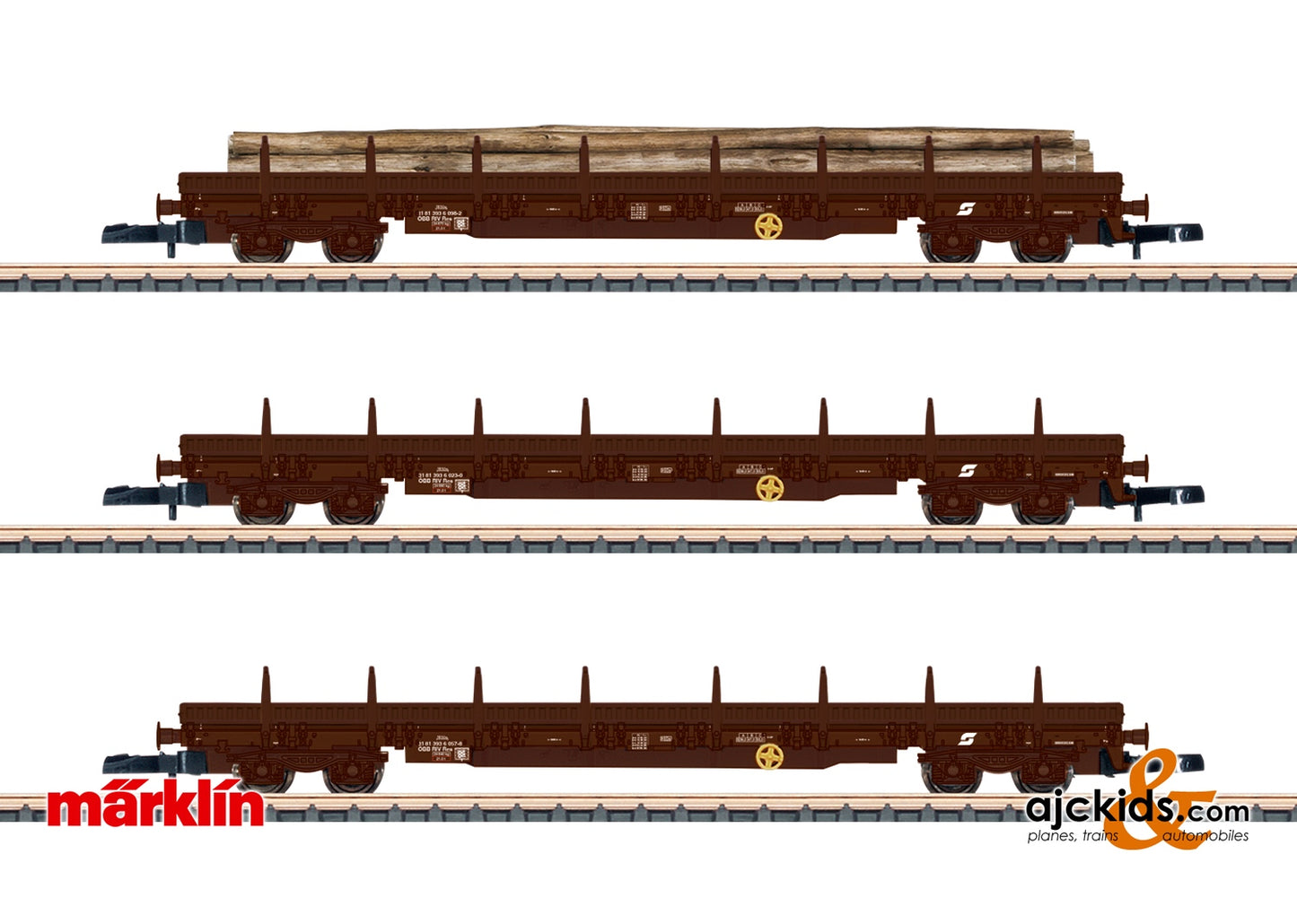 Prototype: 3 Austrian Federal Railways (ÖBB) type Res 3936 four-axle stake cars as they looked in Era IV.