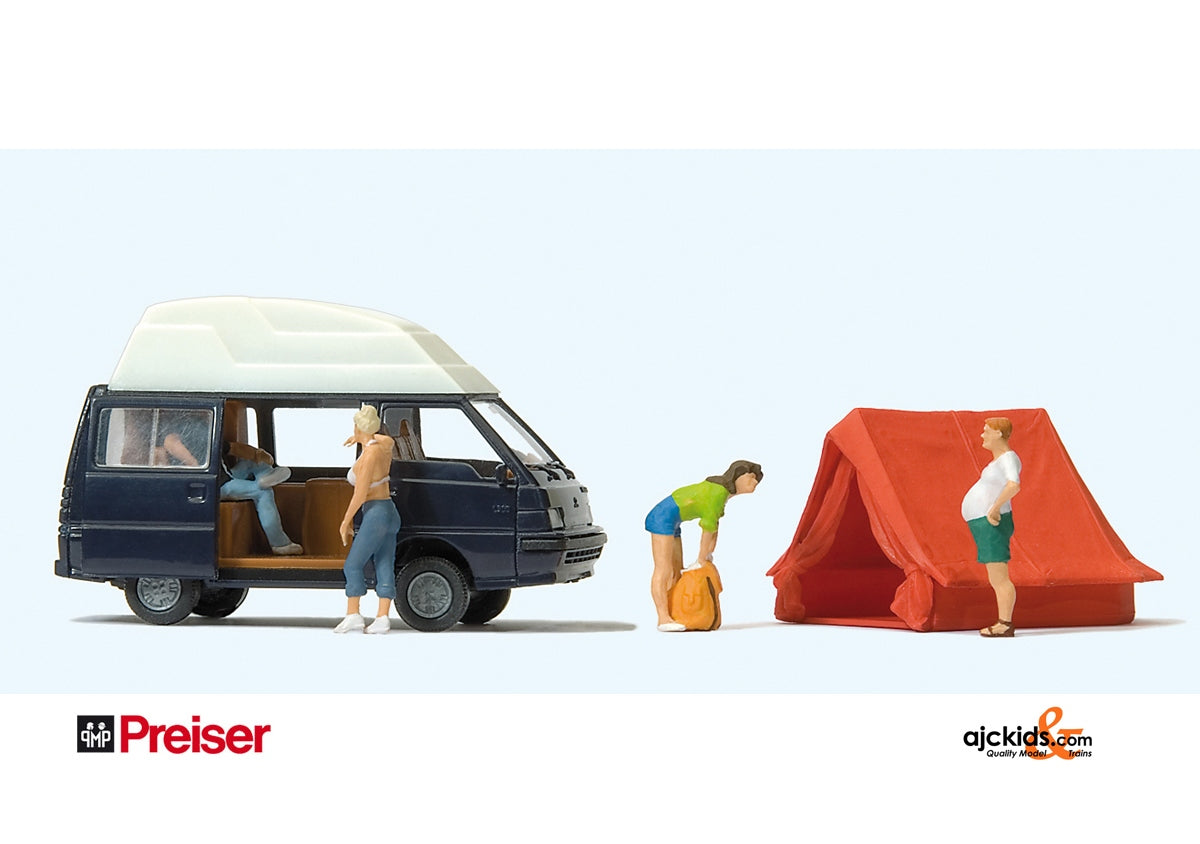 Mitsubishi L 300 All-Wheel Drive Camper Van, With 4 Figures & Tent (blue, white)