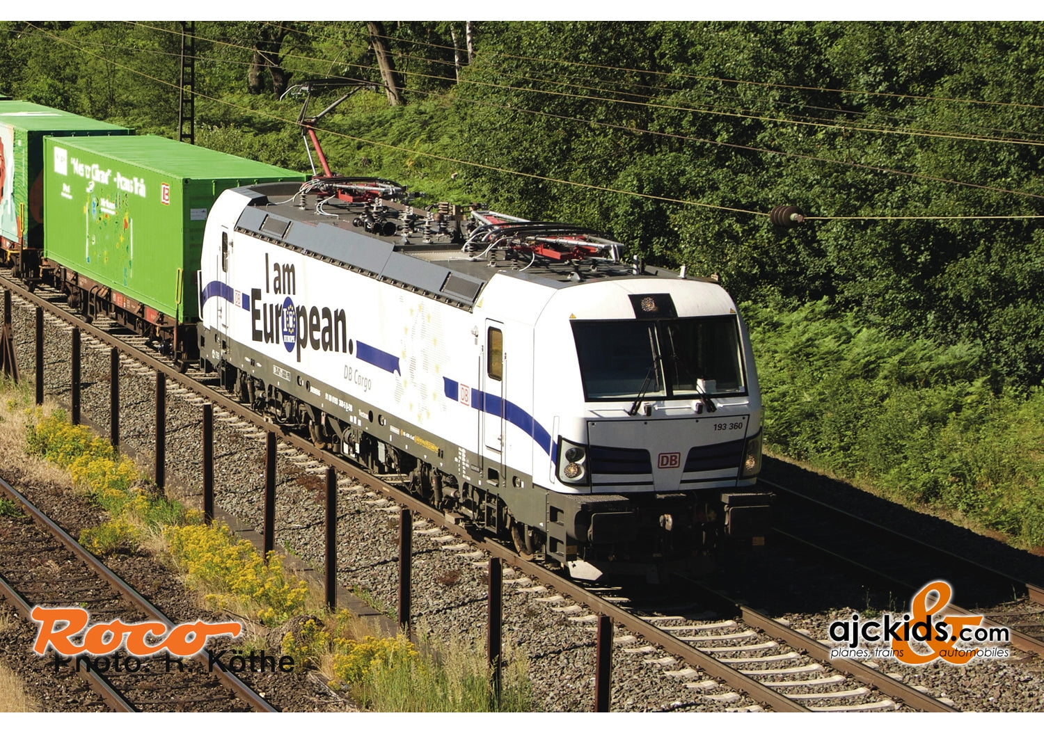 Model is exclusively available at ROCO Locomotive of the DB Cargo with Europe Design "I am European" True to original control panel of the driver's cab is elevated Used for the international goods traffic Free-standing handles partially made of metal