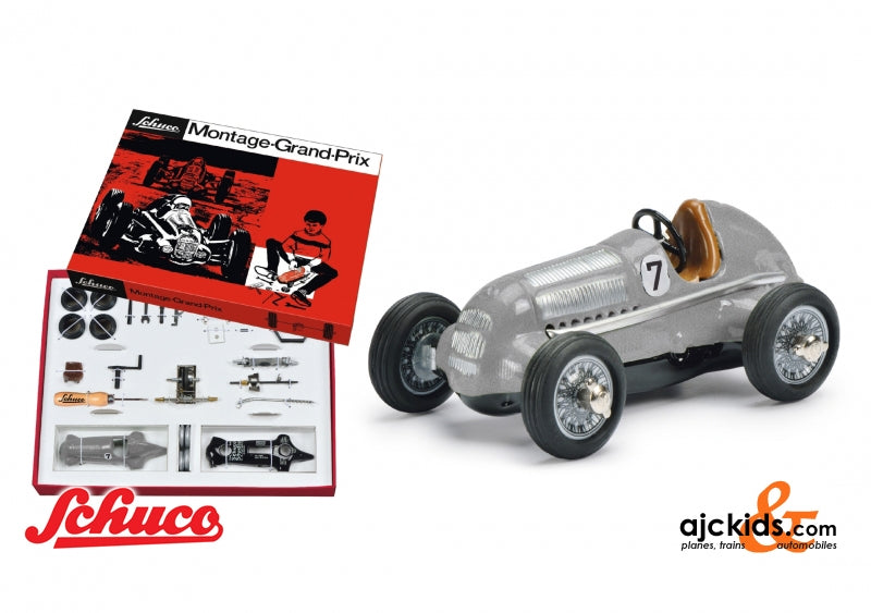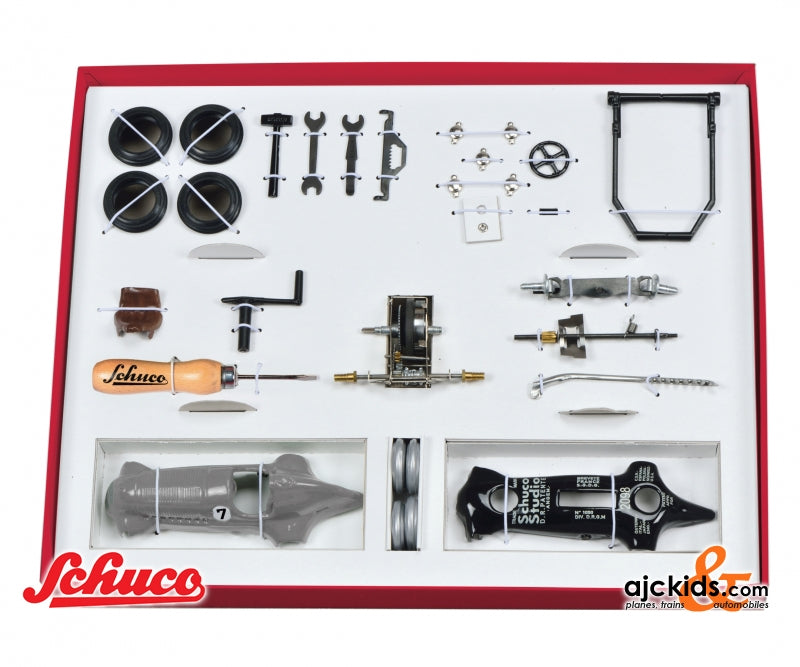 Right from the start of the legendary Schuco Studio I, it was available as an exciting and educational assembly kit. Today, this truly classic toy is back and comes in an impressive vintage-looking gift box. With the Studio Grand Prix as a building kit, you can learn about and get to understand the complex Studio mechanics as you assemble the model. The buil-ding kit is supplied in an attractive, nostalgic gift package. The Studio Grand Prix Building Kit includes a dismounted Studio Mercedes Silver Arrow with a black tool set and jack. It is still a wonderful gift, and not just for „young“ racing fans!