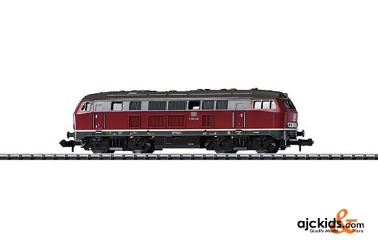The end of steam motive power looming on the horizon as well as demand for greater transport capabilities prompted the DB at the end of the Fifties to order a general-purpose locomotive of medium performance (1,900 horsepower) as part of its expanded program of locomotive types. The following design features were requested: a single-motor, four-axle locomotive with trucks and with diesel hydraulic power transmission, a maximum speed of at least 120 km/h / 75 mph, and sufficient train heating capacity for an express train of 10 cars. During test operations with ten prototypes it was discovered that different components such as the cardan shafts had been designed too small. This was improved from 1964 on with the construction of the regular production locomotives with reinforced components. In addition, the ends of road number V 160 010, which were easier to build, were adopted to save costs and the welded steel lightweight construction was eliminated. The engine room with the drive system, cooling system, and oil-fired Benson boiler for train heating was located between the two soundproof engineer's cabs. The engine room was accessed by a side corridor. Power transmission was done with a Voith fluid transmission, which had to be developed from scratch for motors of this performance class. Since the regular production units had a heavy 1,900 horsepower motor installed in them, the weight of the locomotive increased by about three metric tons. With an axle load of 20 metric tons, using the V 160 on branch lines was practically out of the question. Since enough of the V 100 locomotives were available for this use in the meantime, this was no longer a problem. By 1969, a total of 214 regular production class V 160 (from 1968 on: class 216) had been delivered by the firms Krupp, Henschel, Klöckner-Humboldt-Deutz (KHD), Krauss-Maffei, and Maschinenbau AG Kiel (MaK), of them about half with m.u. controls. Over time more improvements were made to overcome noise by additional insulation of the engineer's cabs, elastic mounting of the motors, and the installation of more effective noise mufflers. The regular production class 216 locomotives left the DB in February of 2004 with the last five units being placed into storage. Seven units were equipped with Scharfenberg couplers as the class 226 and earned an existence as ICE tow locomotives. In addition, the steam boilers for train heating had to make way for Webasto standing heating system and appropriate adjustment weights. The last two of these locomotives modified in this way were retired in July of 2005. Several class 216 units began a second career on private railroads or for construction firms (chiefly in Italy).